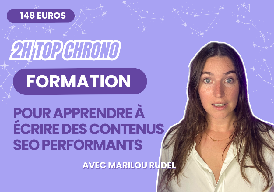 Marre d’écrire dans le vide ? En 2h, vous apprendrez à transformer vos textes en contenus visibles sur Google et utiles pour vos lecteurs. Simple, clair, efficace. Une formation concrète et tournée vers l'action.